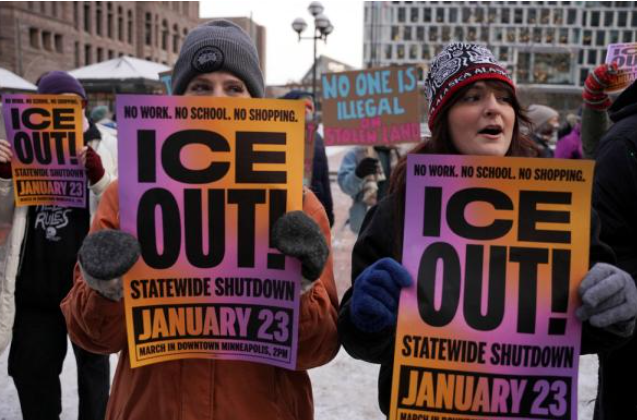 Demonstrators take part in a anti-ICE protest, after a U.S. Immigration and Customs Enforcement (ICE) agent fatally shot Renee Nicole Good on January 7 during an immigration raid, in Minneapolis, Minnesota, U.S., January 20, 2026. REUTERS/Seth Herald/File Photo